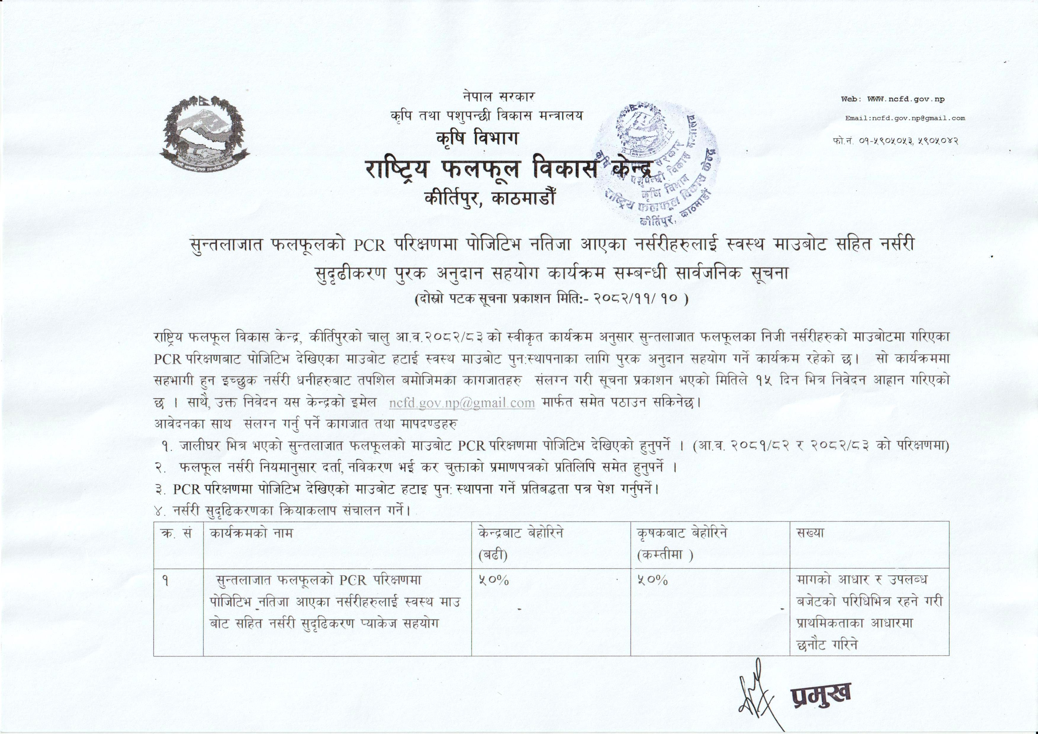 राष्ट्रिय फलफूल विकास केन्द्र, कीर्तिपुर, काठमाडौँको आधिकारिक वेबपेजमा स्वागत छ